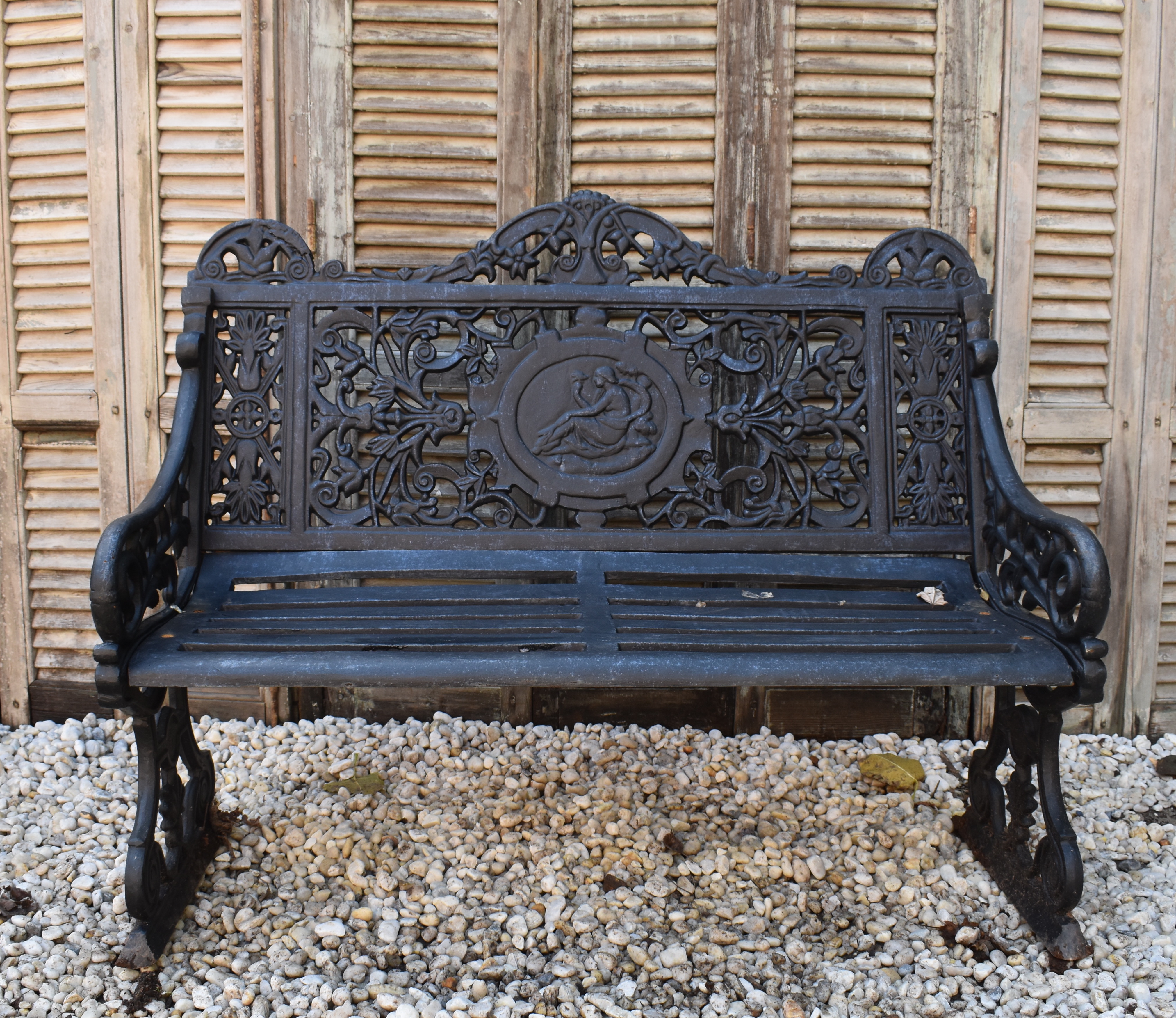 A cast iron garden bench