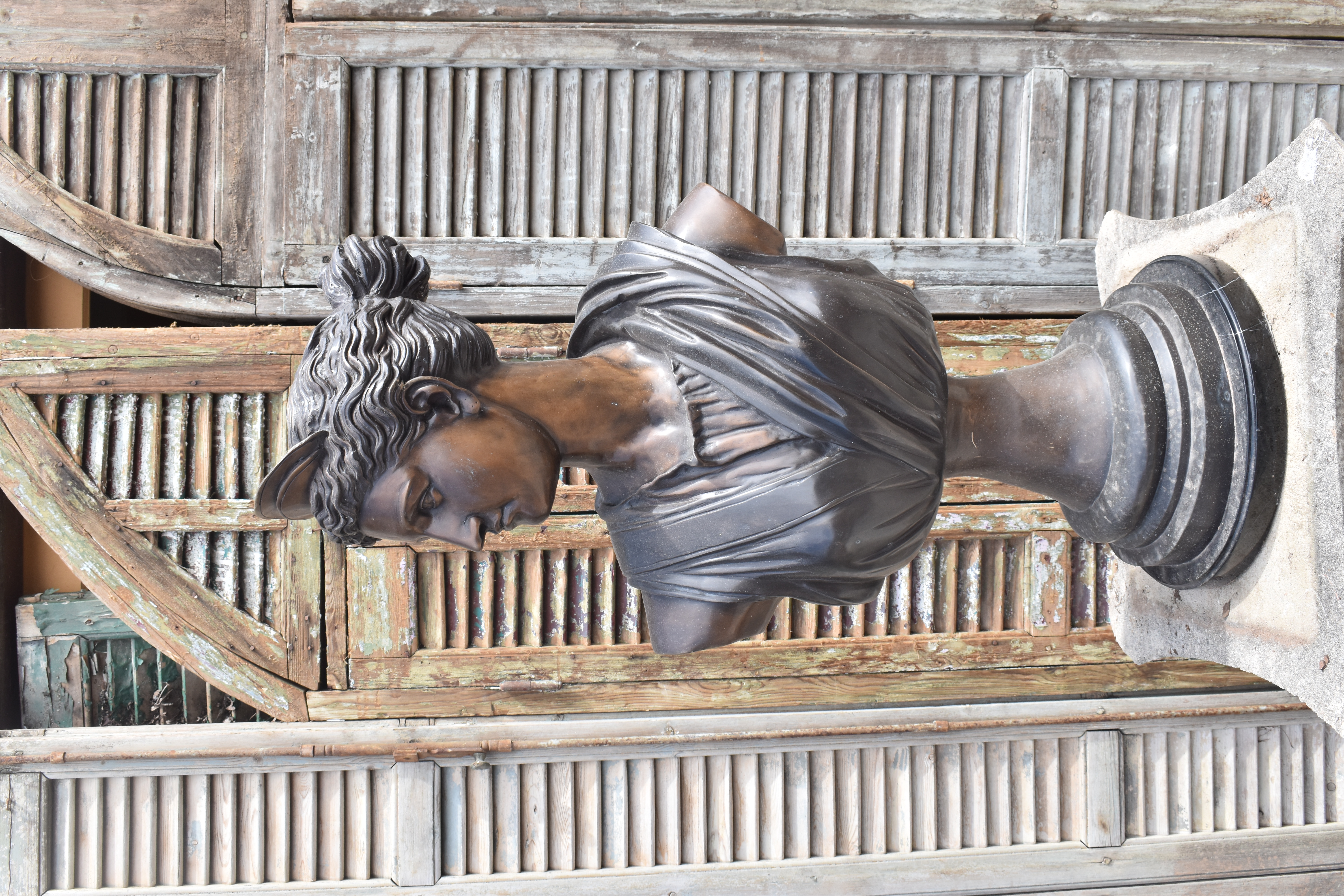 A bronze bust of Dianna the Huntress on attached marble base