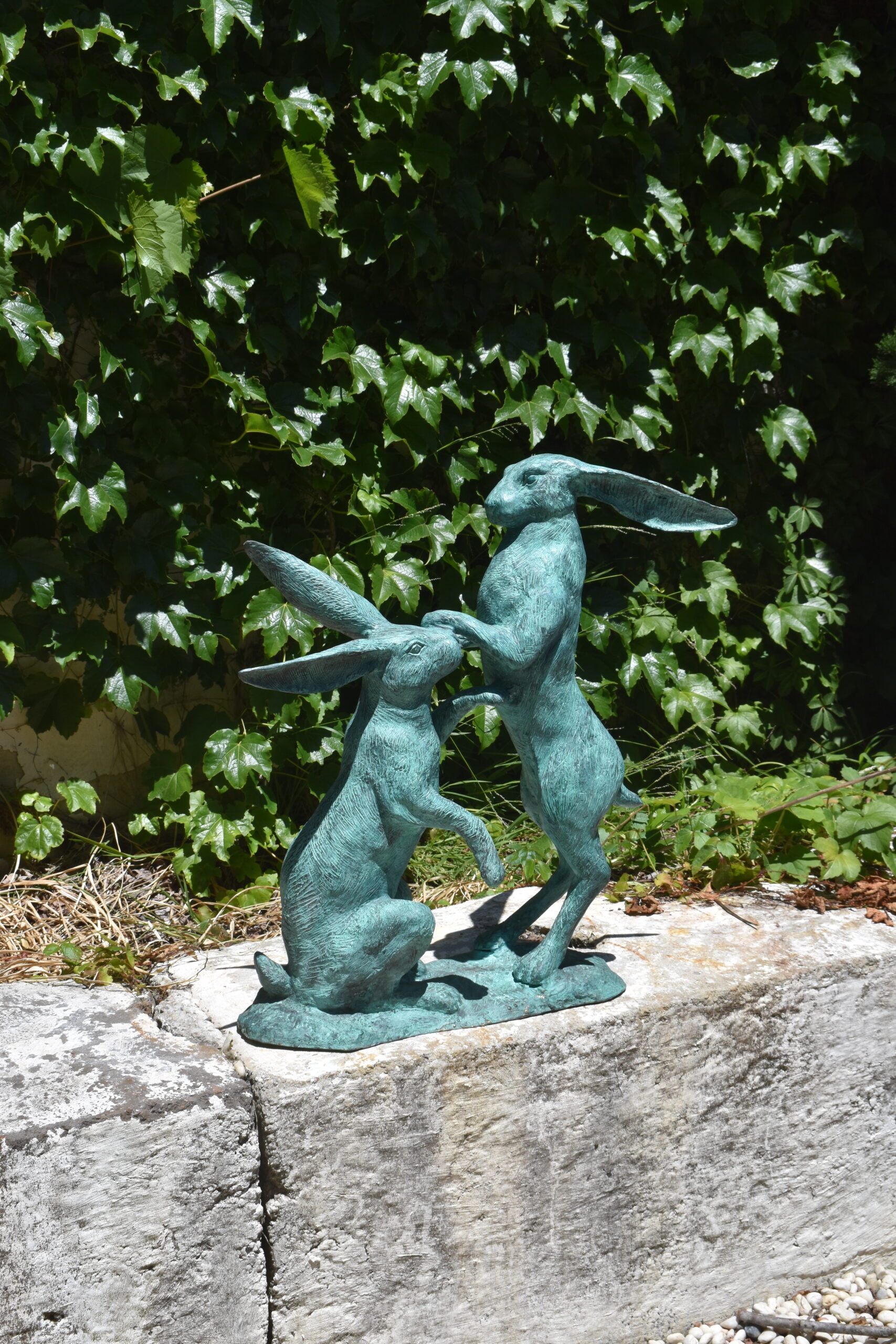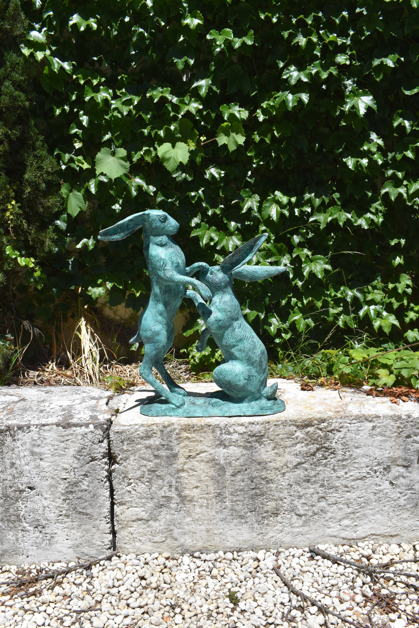 a bronze sculpture of boxing hares quantity
