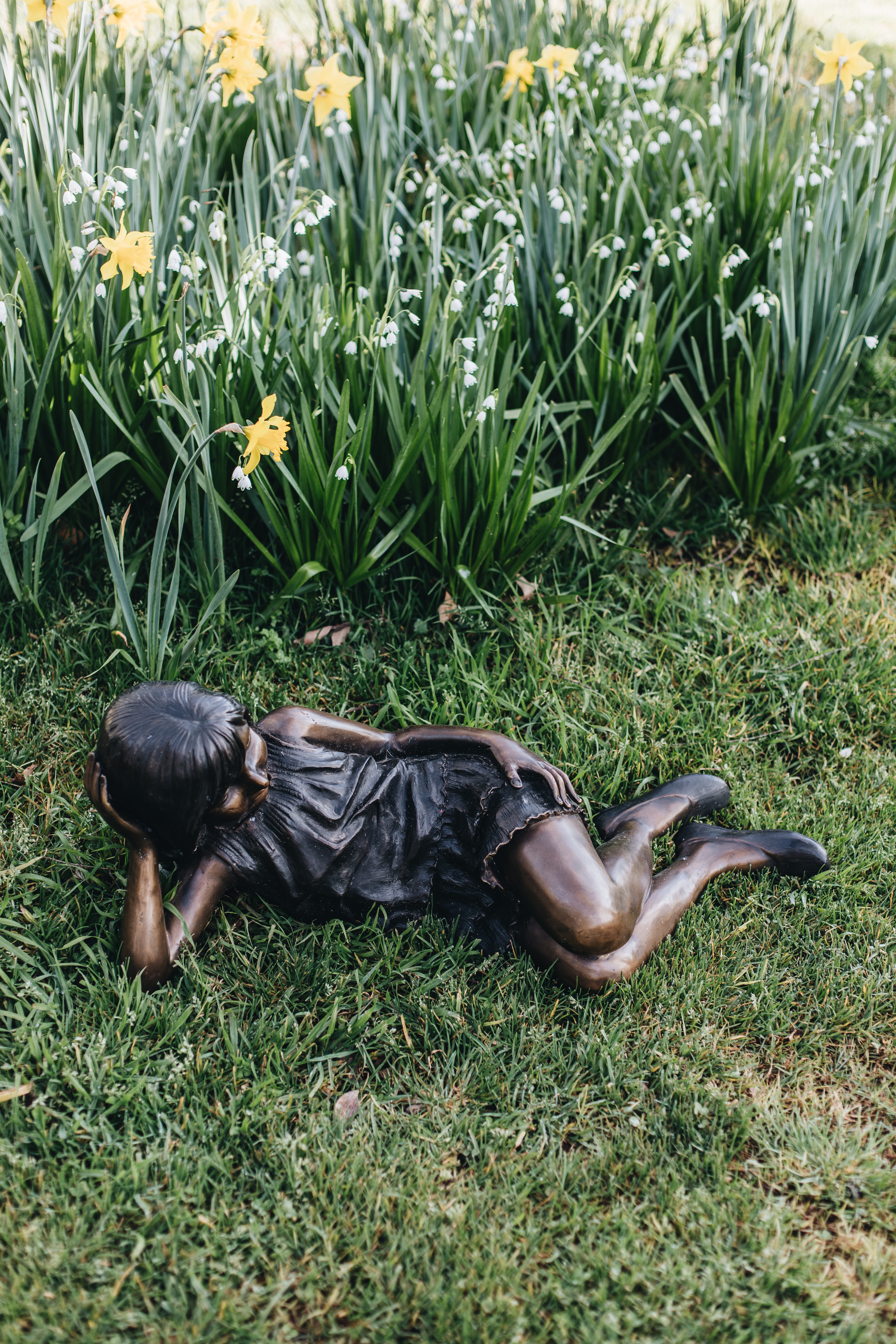 a bronze sculpture of a boy fishing, plumbed as a fountain.