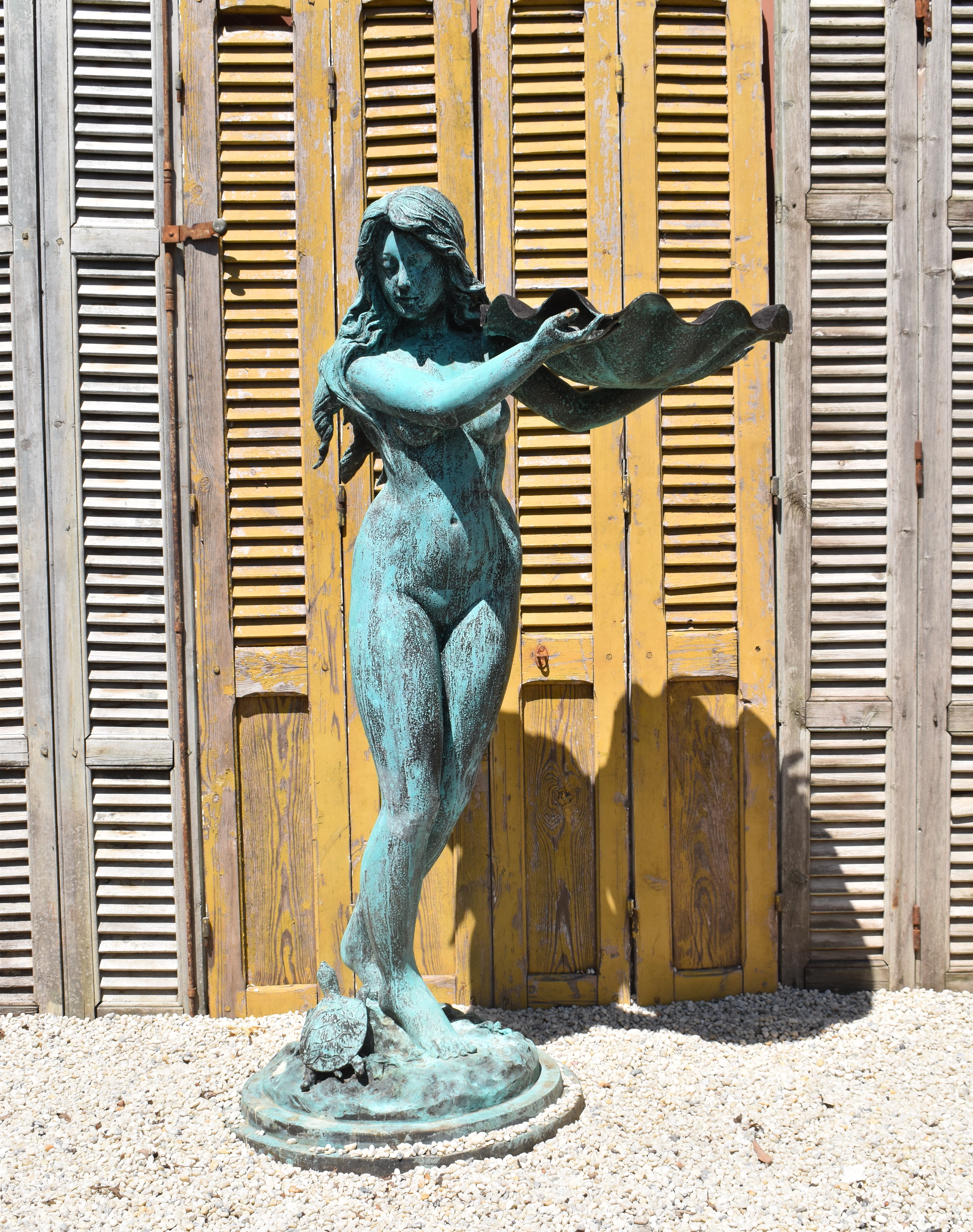 A bronze woman, plumbed as a fountain