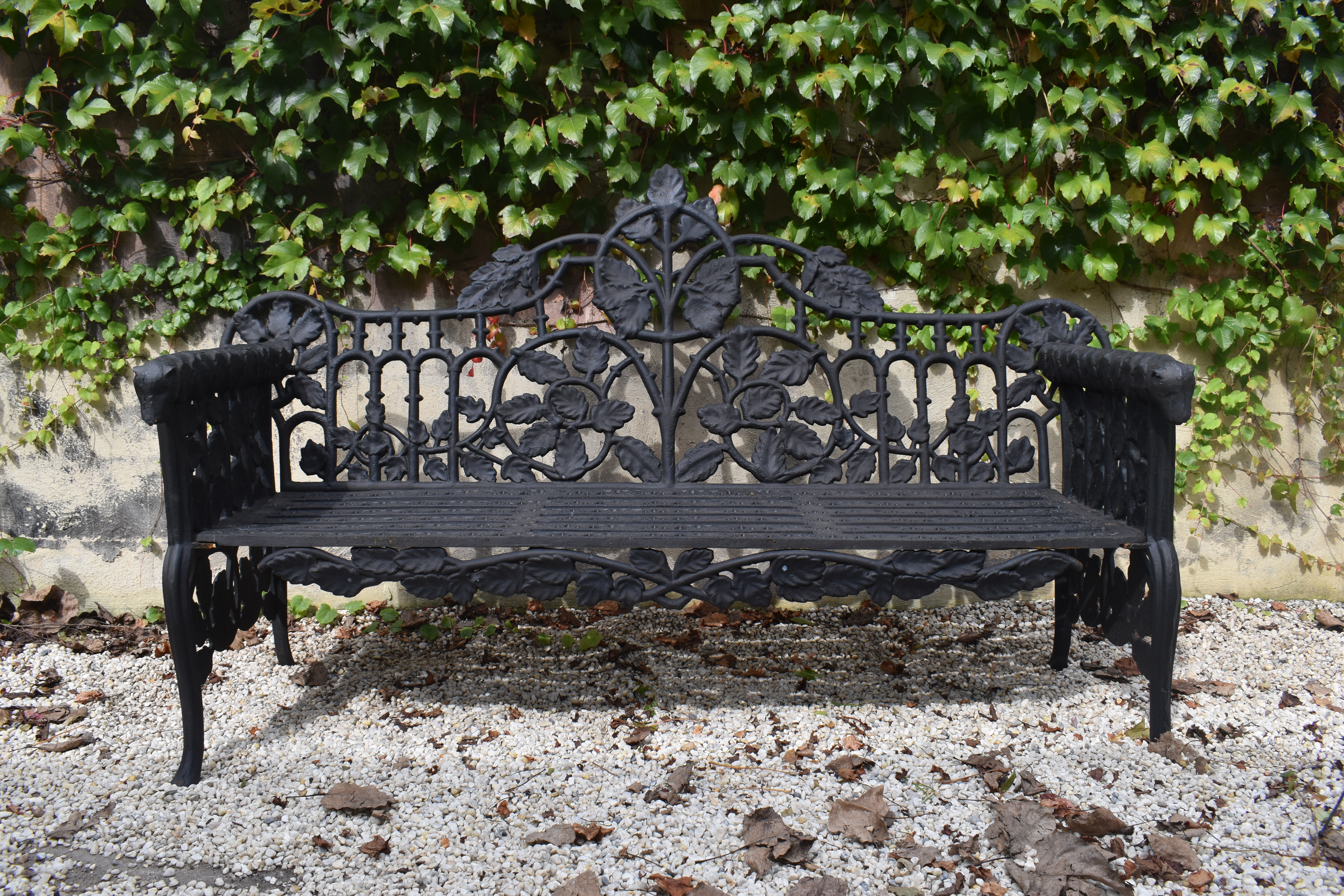 a cast iron Coalbrookdale style Oak and Ivy pattern bench,