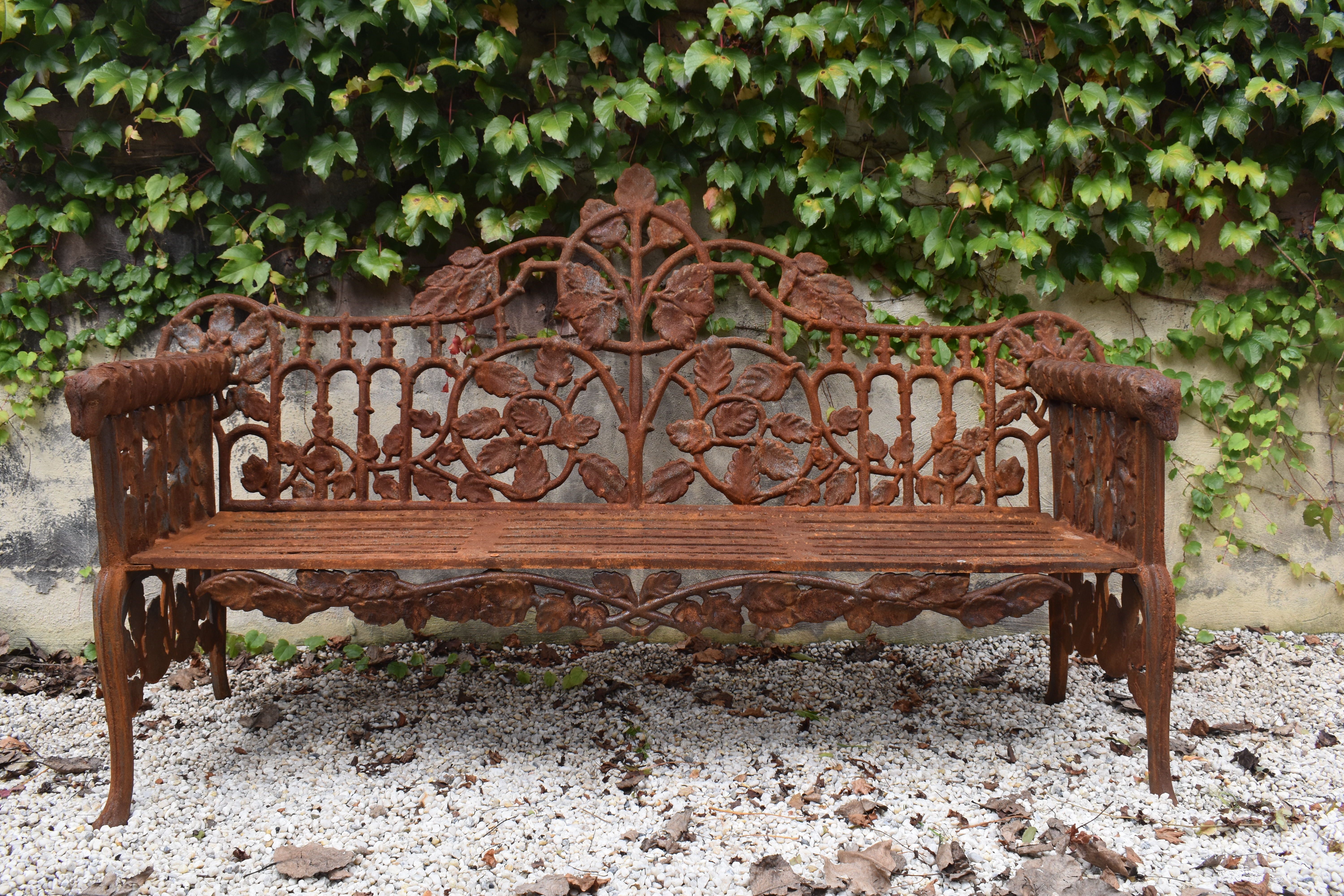 A lovely cast iron Coalbrookdale style oak leaf pattern bench.