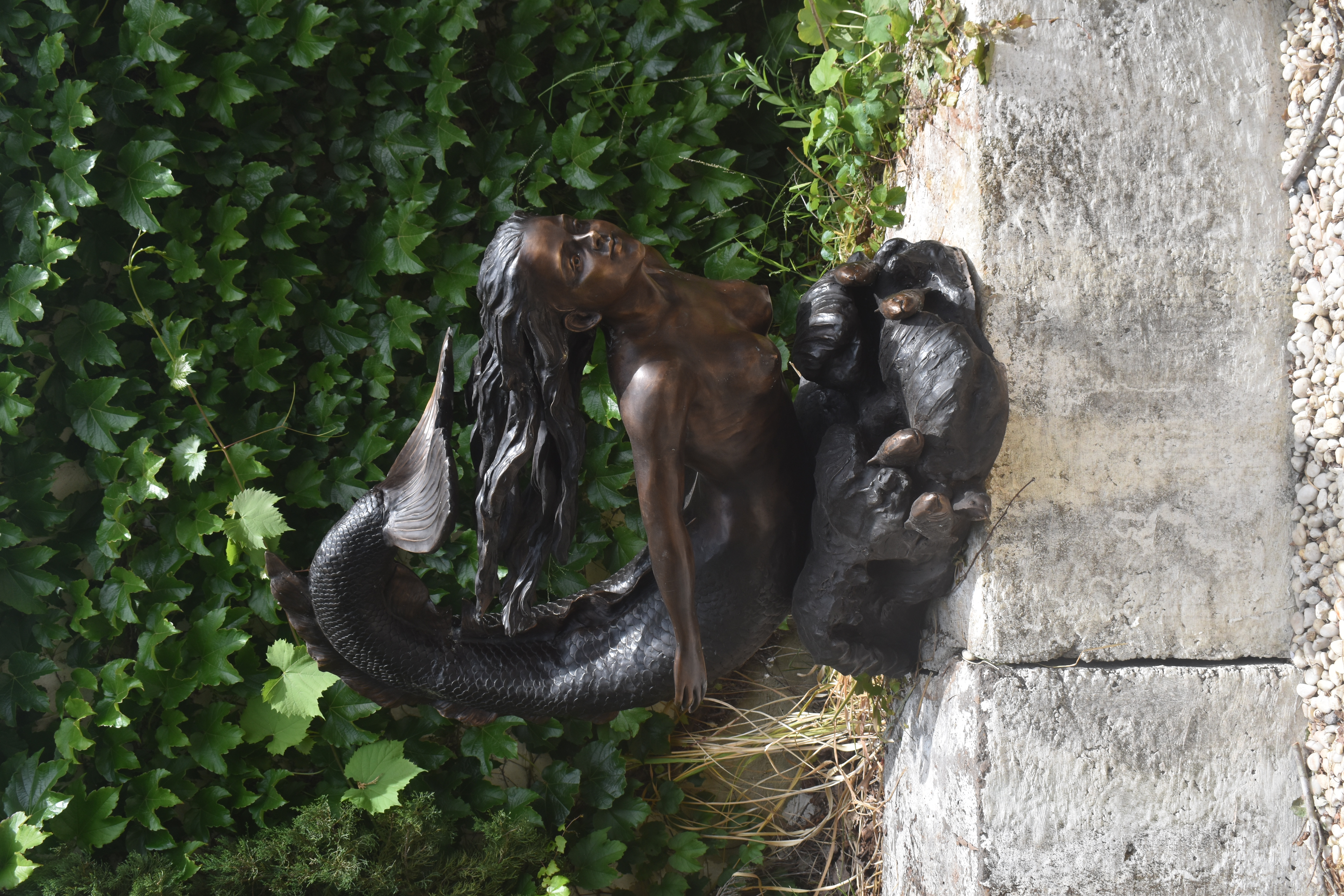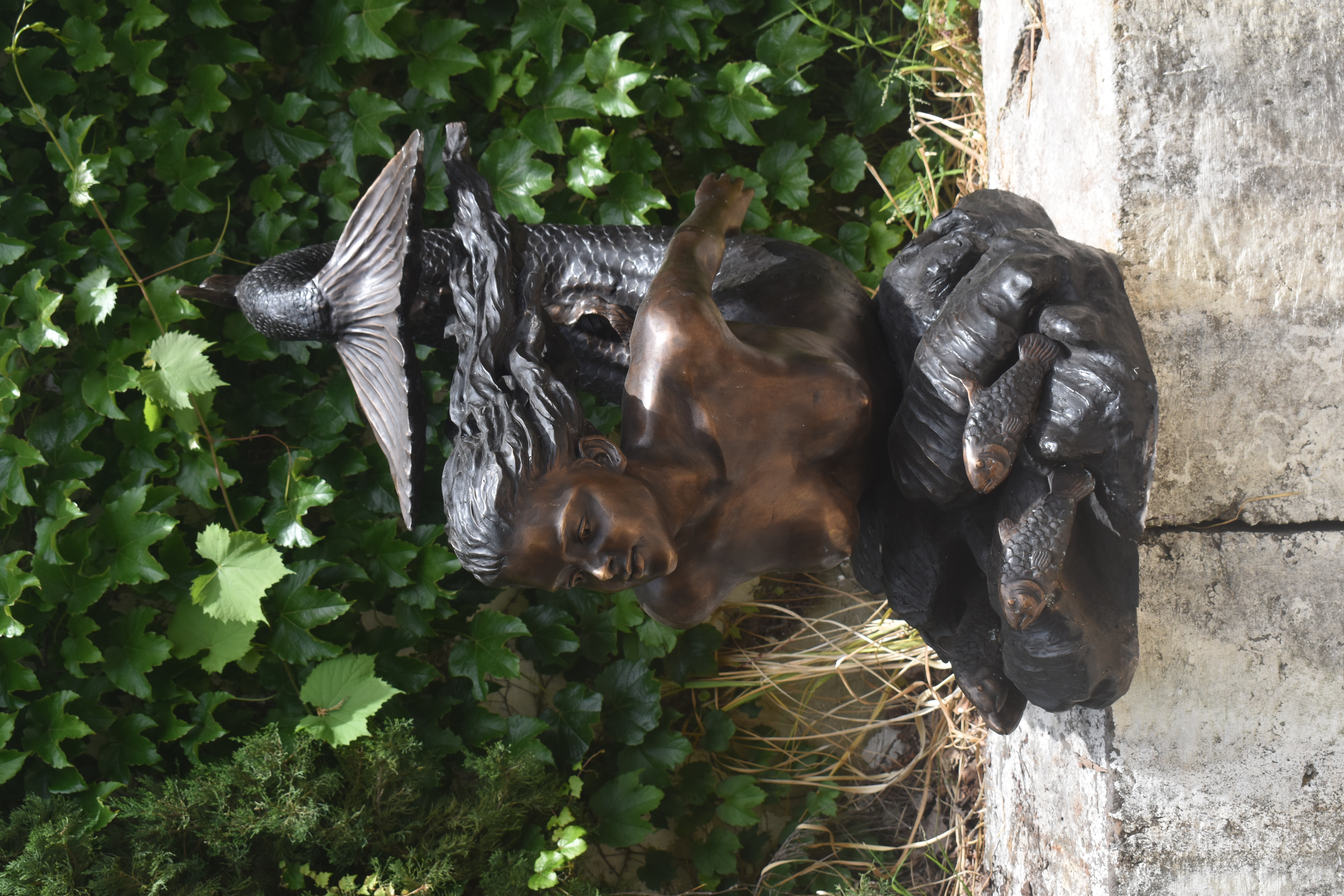 A large bronze statue of 3 children paying ring around the Rosie, plumbed as a fountain water coming from central flower.