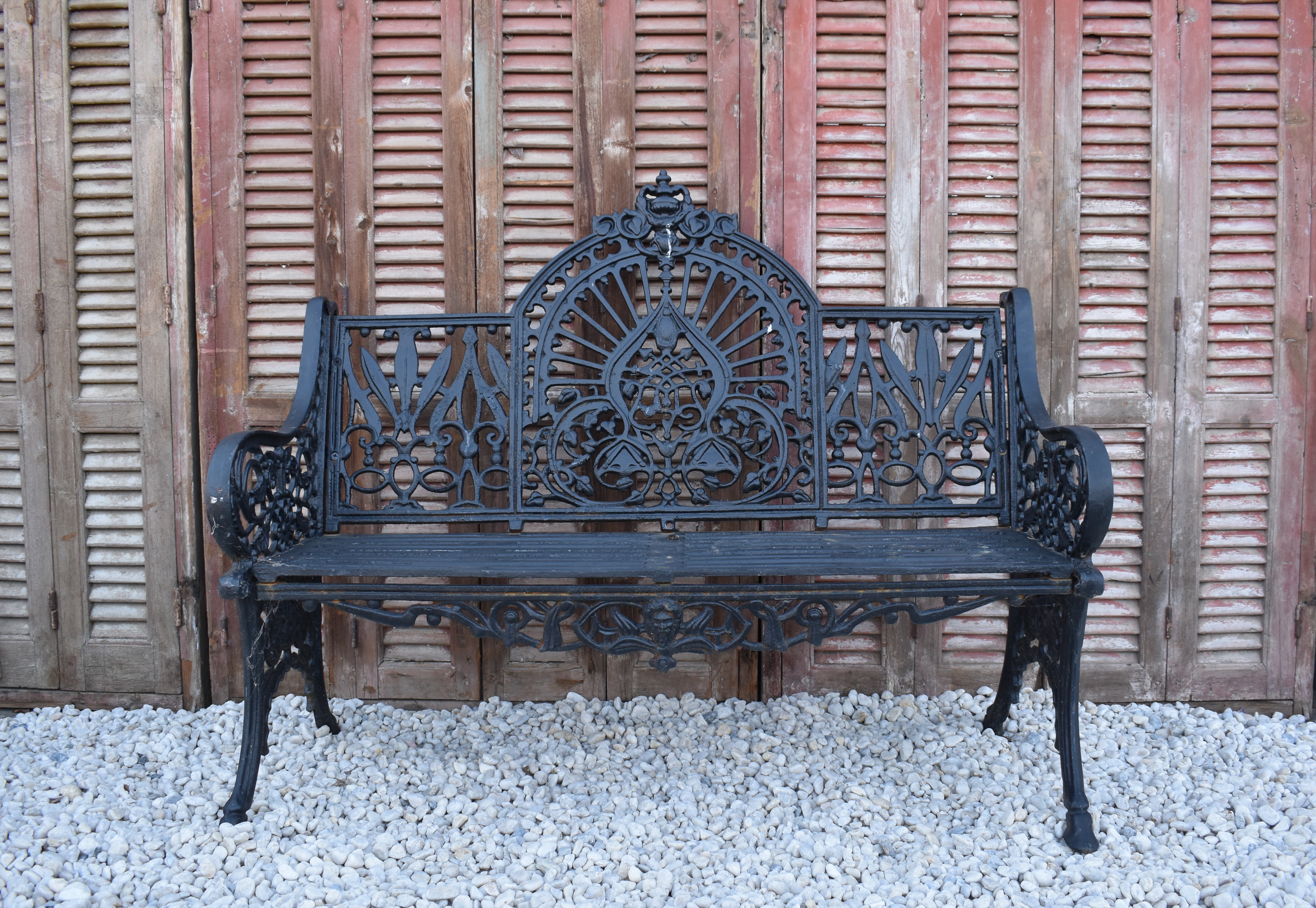 a large cast iron Coalbrookdale style Medallion pattern bench