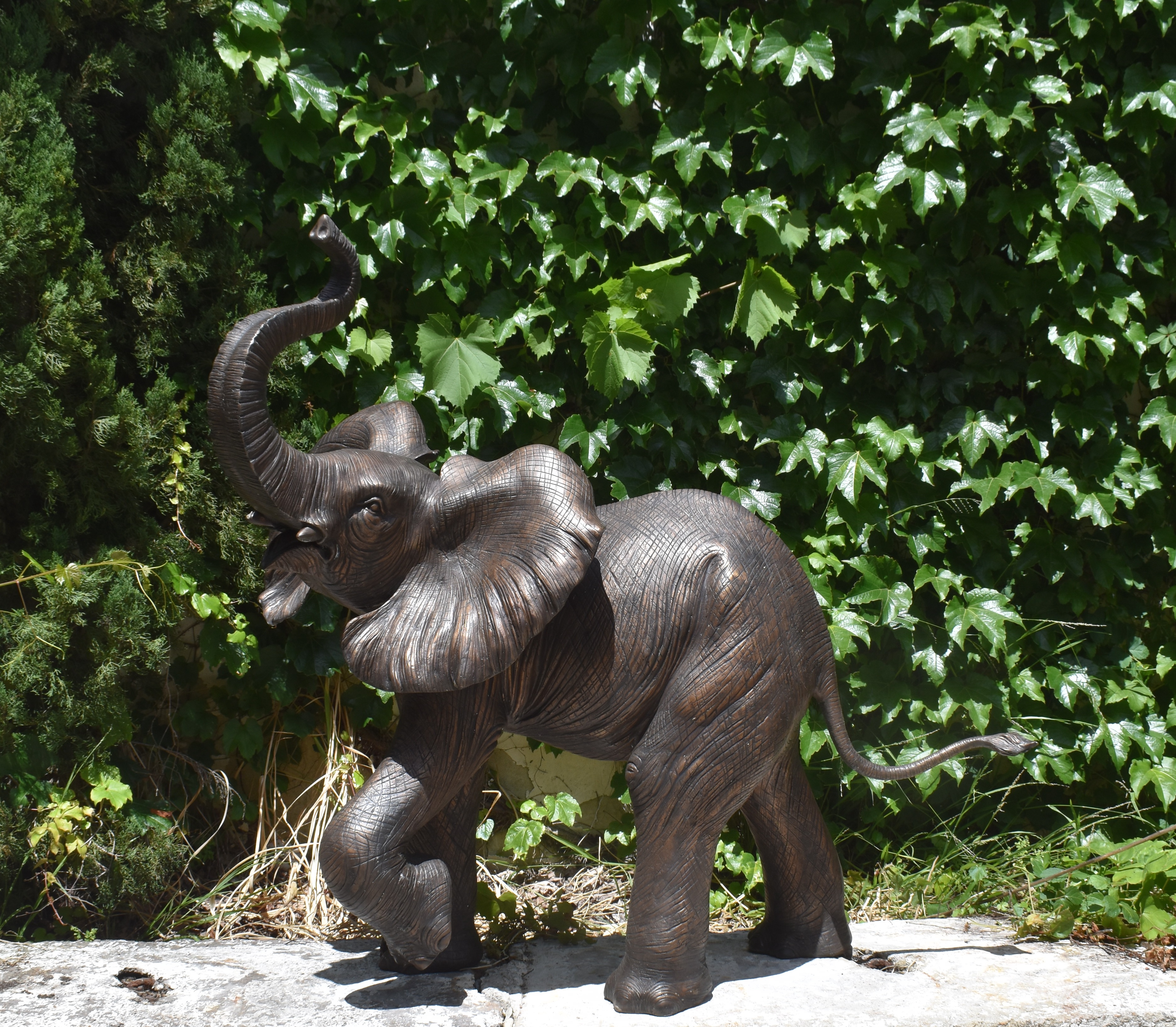 A bronze sculpture of an elephant